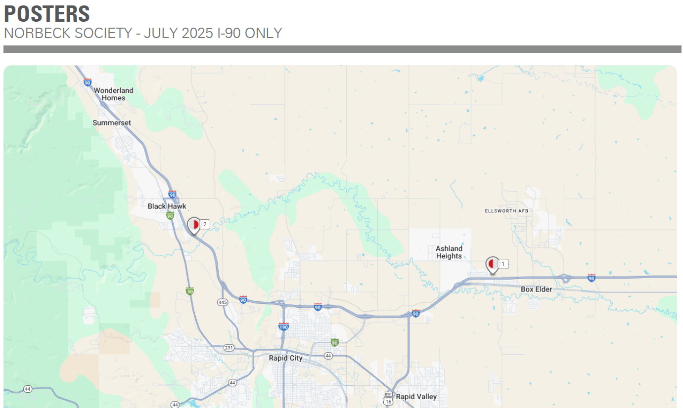West of the Ellsworth Airforce Base exit along I-90, facing incoming traffic east of Rapid.